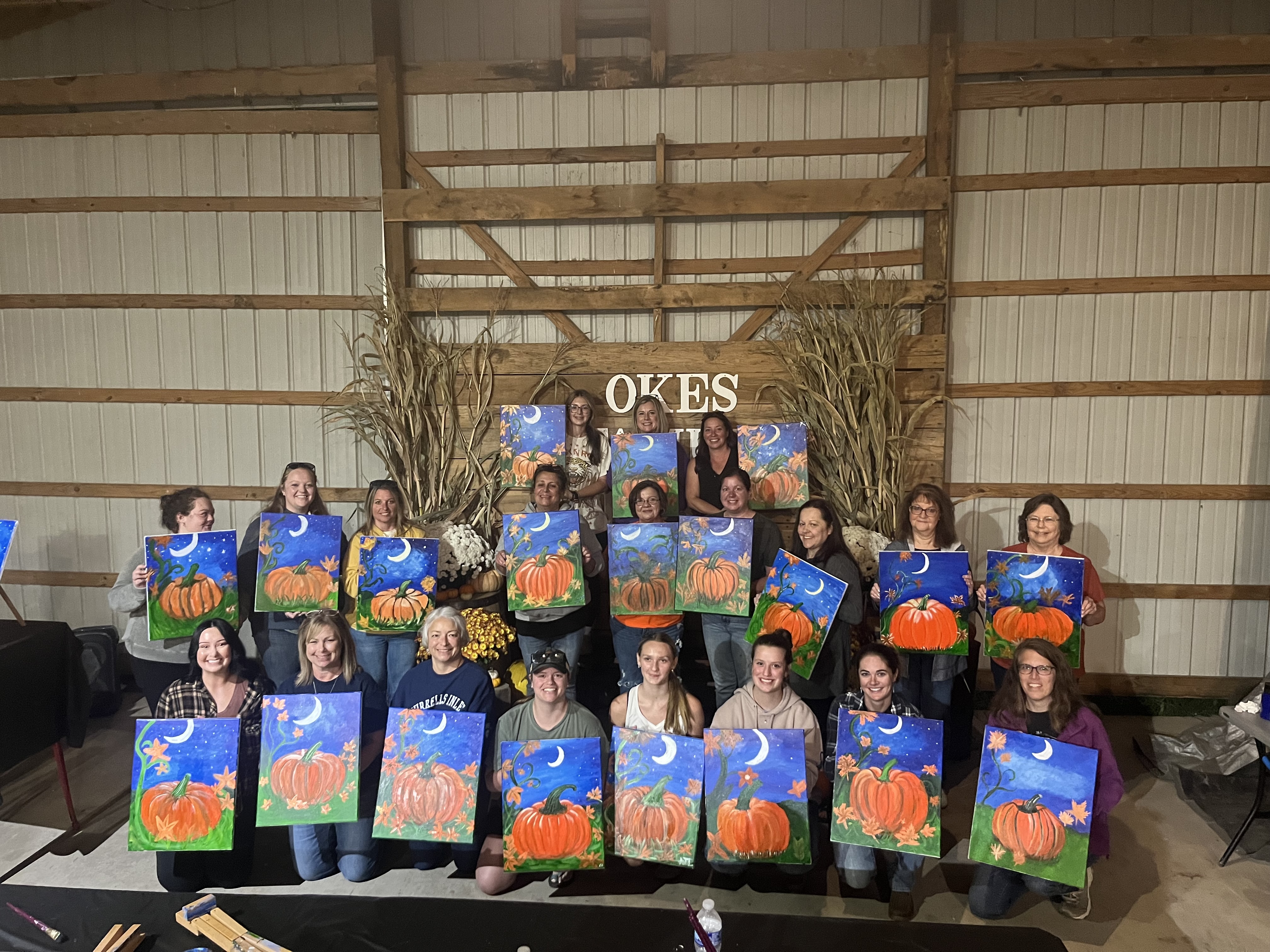 Our First Paint Night was a HIT. 23 ladies learned to paint the perfect pumpkin. Thank you so much to Linda Boyd for teaching our class. We hope to to do more of these in the future.